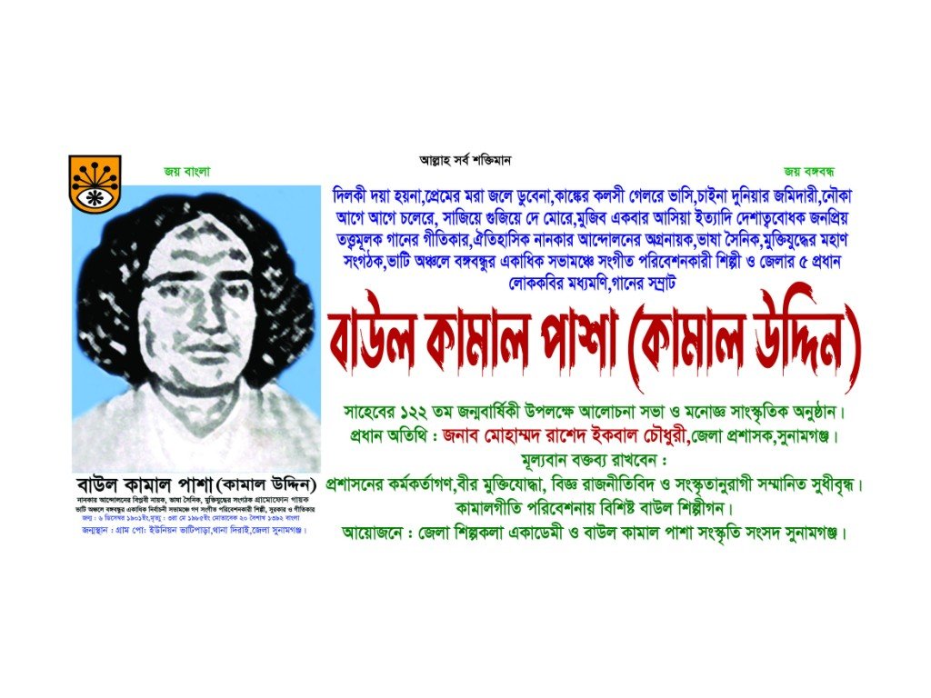 ৬ ডিসেম্বর বাউল কামাল পাশার ১২২তম জন্মবার্ষিকী