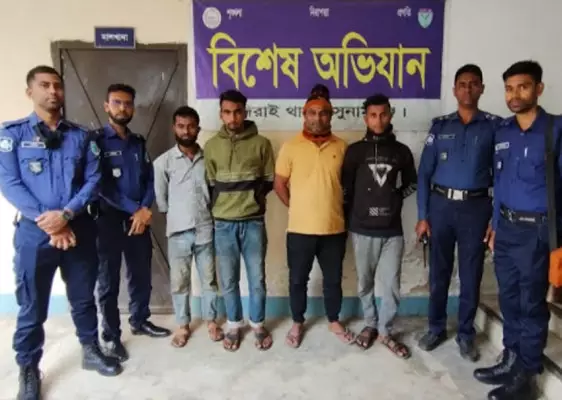 ভারতীয় চিনি বোঝাই ৪টি পিকআপ গাড়িসহ ৪ চোরাকারবারি গ্রেফতার