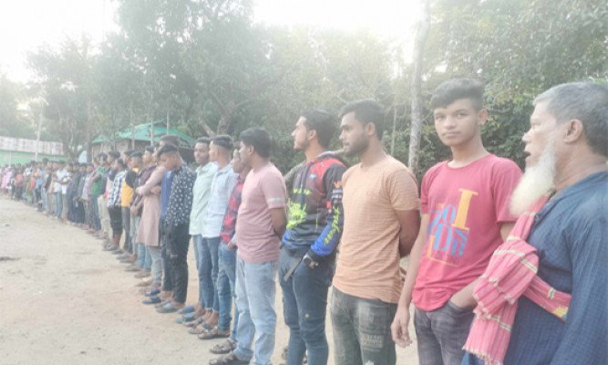 খেলার মাঠ দখল মুক্ত করার দাবিতে মানববন্ধন