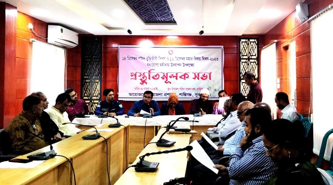 শান্তিগঞ্জপ্রতিনিধি :: সুনামগঞ্জের শান্তিগঞ্জে যথাযথ মর্যাদায় শহিদ বুদ্ধিজীবী দিবস ও মহান বিজয় দিবস-২০২৩ উদযাপনের লক্ষে উপজেলা প্রশাসনের আয়োজনে প্রস্তুতিমূলক সভা