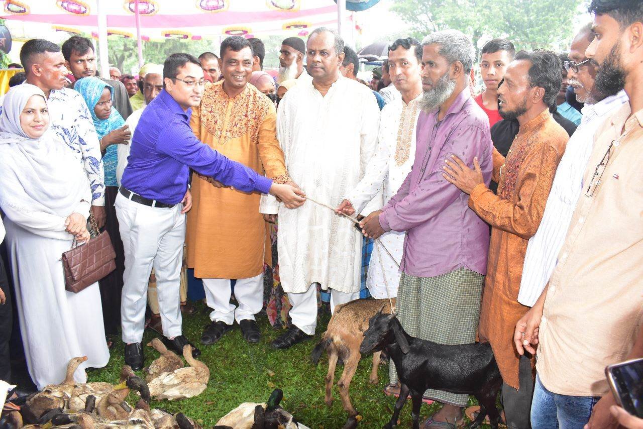 ছাতকে প্রাণী সম্পদ অধিদপ্তরের উদ্যোগে হাঁস-ছাগল ও পশু খাদ্য বিতরণ